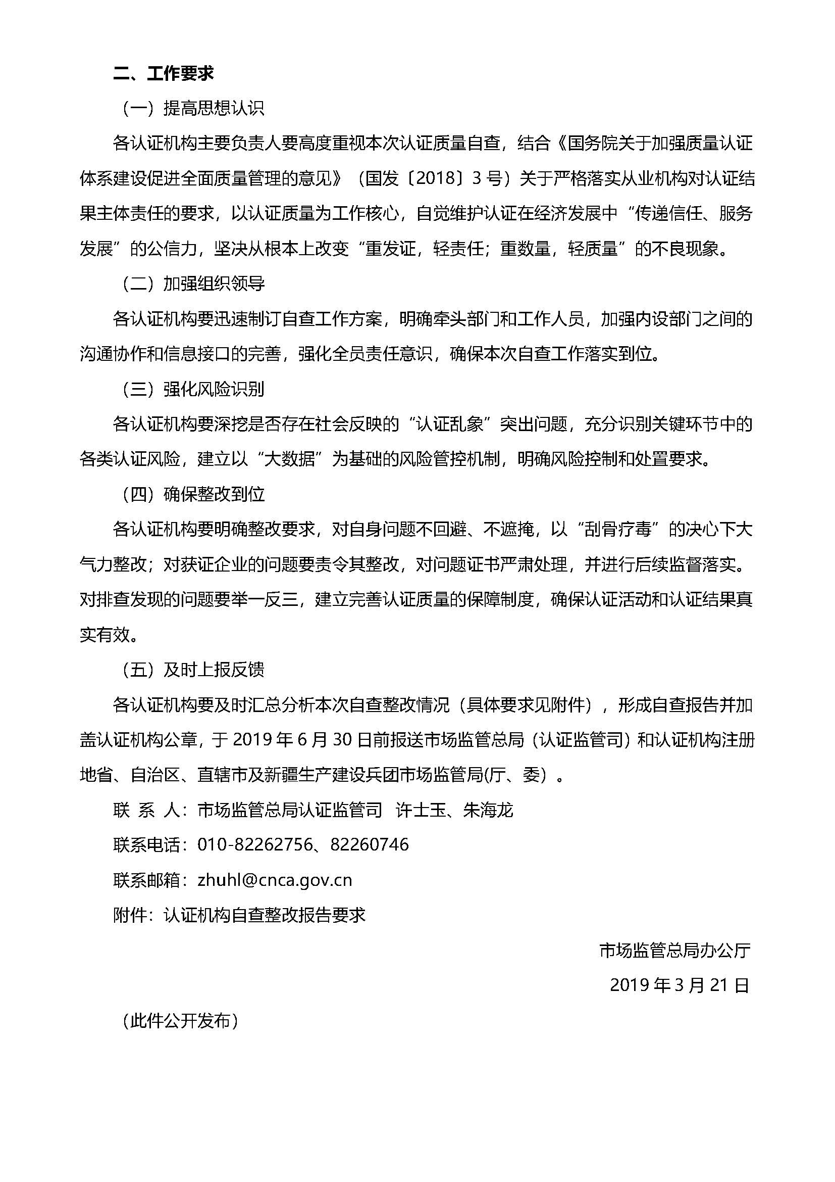 市場(chǎng)監(jiān)管總局辦公廳關(guān)于深入開(kāi)展認(rèn)證機(jī)構(gòu)認(rèn)證質(zhì)量自查工作的通知-市監(jiān)認(rèn)證2019-18號(hào)發(fā)表時(shí)間:2019年05月23日